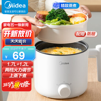 1、美的1.7L配蒸笼电煮锅 【参考价:119元】